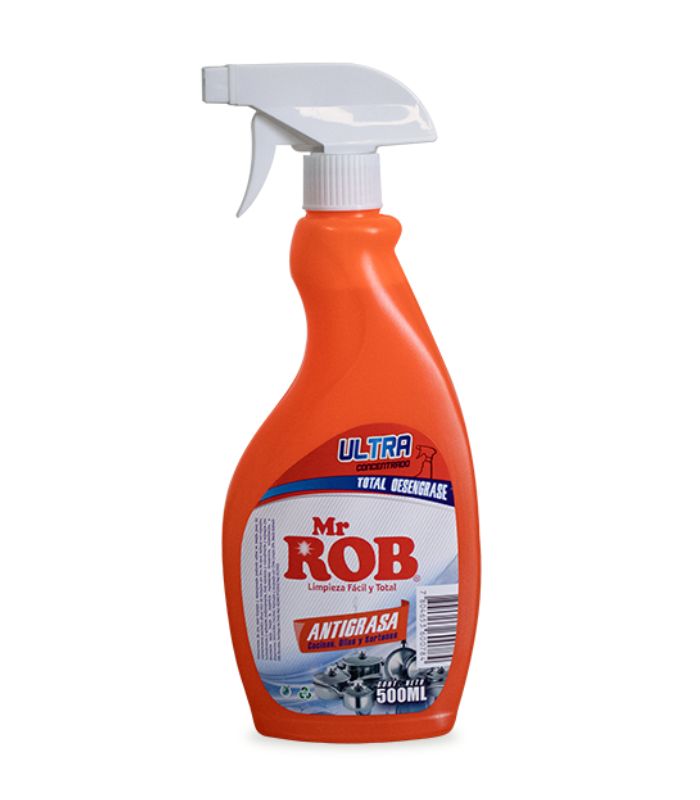 El Desengrasante MR ROB en formato de 500 ml es la solución potente para eliminar la grasa y la suciedad incrustada. Su fórmula de acción rápida es ideal para cocinas, hornos, campanas, azulejos y parrillas. Su envase permite una aplicación directa y cómoda justo donde se necesita.
