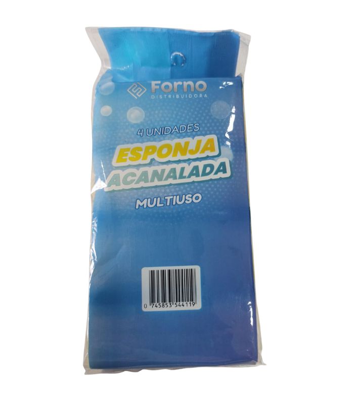 Pack de 4 esponjas acanaladas Forno, ideales para lavar loza y superficies. Prácticas, rendidoras y aptas para uso diario.