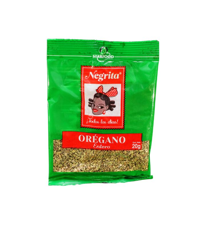 El Orégano Entero La Negrita en sobre de 20 gramos ofrece hojas de orégano seleccionadas, secas y enteras, que garantizan un aroma potente y un sabor cálido característico. Es la hierba esencial para dar autenticidad a salsas de tomate, pizzas, pastas, adobos y el tradicional pebre chileno. Este formato pequeño asegura que el producto se consume con su máxima frescura y potencia aromática.