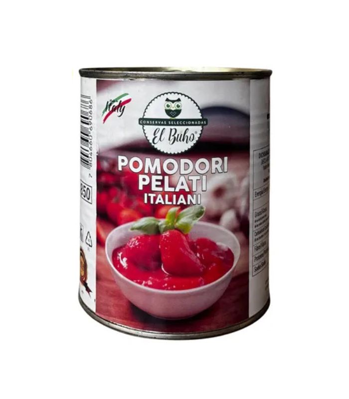 El Tomate Italiano Pelado Entero El Búho en su clásico envase de 800 gramos es el ingrediente esencial para la auténtica cocina mediterránea. Seleccionados y pelados al vapor, estos tomates mantienen su frescura, forma y un sabor natural y dulce que realza cualquier preparación. Son perfectos para ser utilizados enteros, troceados o triturados para la base de salsas, guisos, ragús y sopas caseras. Su formato es ideal para el consumo familiar y para garantizar la calidad premium en tus platos. ¡El secreto de un sabor intenso y natural en tu cocina!